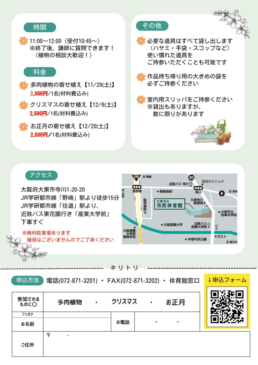 ※申込フォームからお申込みの際は備考欄に参加したい寄せ植えの名前をご記入ください