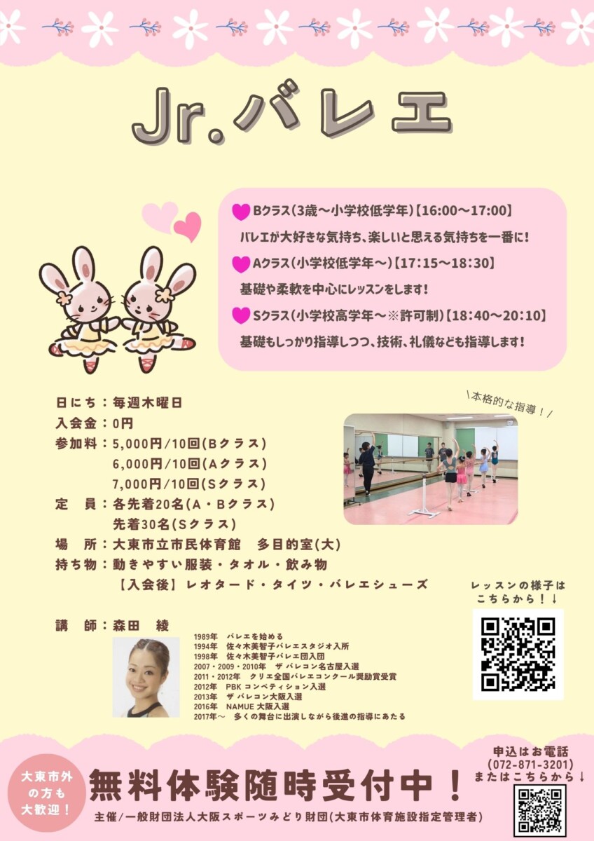 | 申し込み方法 | まずは市民体育館窓口・電話・申し込みフォームにて無料体験にお申込みください。(状況により新規申込を締め切っている場合がございます) |